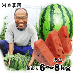 - 【予約販売】河本農園の大玉スイカ(訳あり)(1玉6-8kg程度)(L-3L)送料無料[鳥取県産西瓜][常温]水分たっぷり♪!すいか 鳥取スイカ【7月中旬以降収穫があり次第発送】